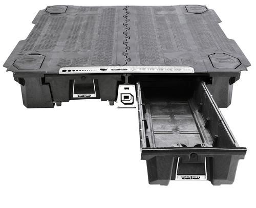 Het ladesysteem van Decked is gemaakt van Polyethyleen ( kunststof) en een stalen subframe. Het systeem bestaat uit twee lades die tot 125cm uitschuiven. Met een eigen gewicht van rond de 100kg is dit systeem uitermate geschikt voor in uw Pickup. Door het lichte eigen gewicht blijft er genoeg laadvermogen over. beide lades gaan tot 100kg draagvermogen en bovenop het Decked systeem kan er nog een bedslide geplaatst worden. Het totale draagvermogen bovenop het Decked systeem is 900 kg. Een volledige lijn met accessoires is er beschikbaar voor het Decked systeem zoals toolboxes , verdeelschotten , sloten en Railsen met bindogen. Het Decked systeem past in een bak met sprayliner. Als u een plastic bedliner hebt dan zal deze verwijderd moeten worden.