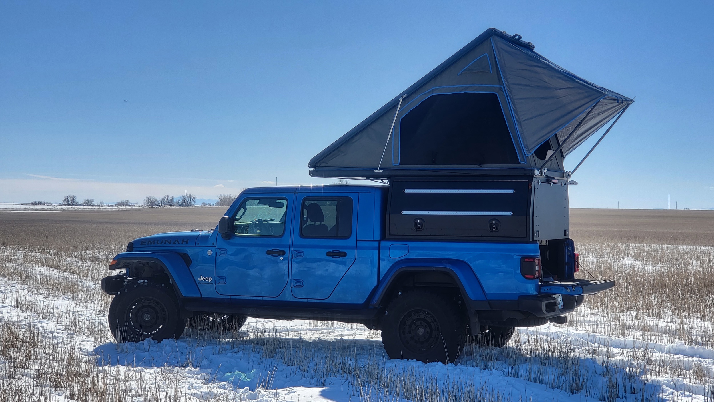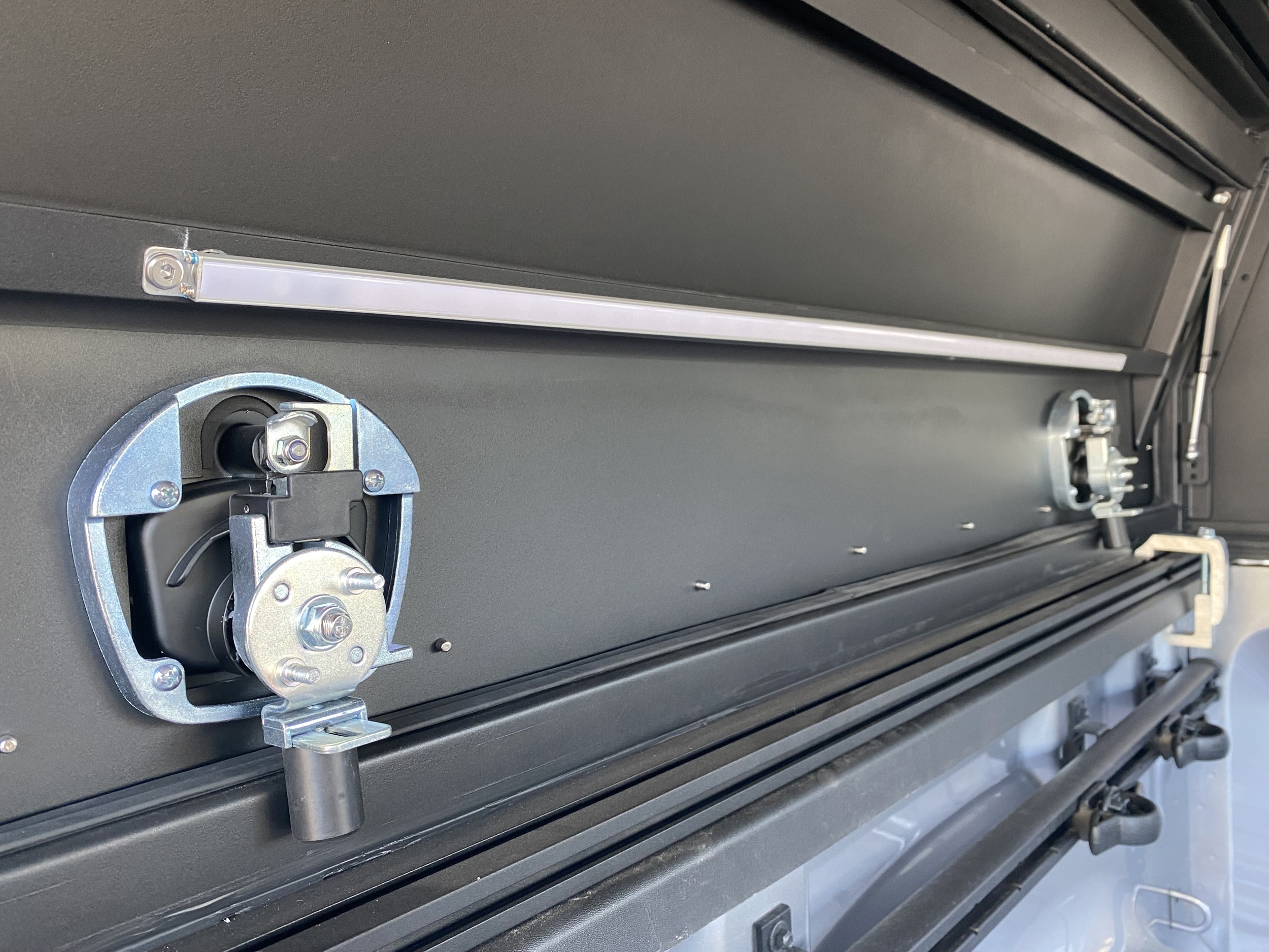 Dirtbox Overland stalen Hardtop. Deze Nieuwe Types hardtop zijn bij uitstek geschikt voor toepassingen waarbij multifunctioneel gebruik gewenst is. Deze stalen hardtops zijn tough as nails en zijn voorzien van een zwarte stootvaste coating. Met de oversized cargo doors heeft u toegang tot uw laadruimte aan zowel de linker als de rechterzijde . Alle deuren in de hardtop zijn voorzien van zware sloten die afsluitbaar zijn. Ook heeft de Hardtop standaard railsen op het dak voor de montage van eventueel een roofrack. Door de Ledstrips aan de binnenzijde van de cargodoors en aan het plafond van de hardtop is uw werkplek volledig verlicht. Het bedieningspaneel voor de verlichting is aan de achterzijde geplaatst en ook voorzien van USB lader zodat uw moeiteloos werklampen , laptop of telefoon kunt laden. Ook voor de Overlanders die graag buiten de deur zijn is de hardtop uitermate goed geschikt. de Dirtbox Hardtop kan gemakkelijk worden voorzien van een daktent. Kortom deze Dirtbox Overland hardtop is een musthave voor degene die zijn Pickup wil gebruiken voor zowel werk als plezier.