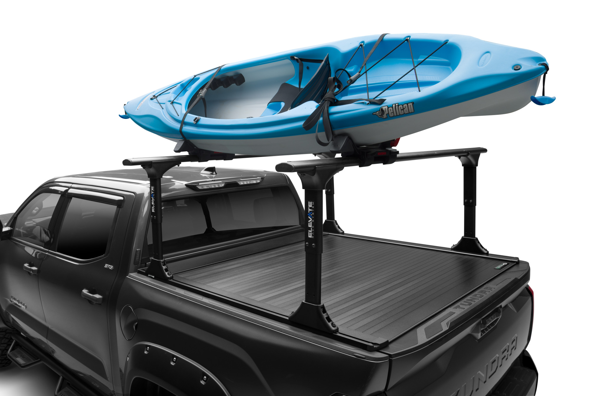 Om meer opbergmogelijkheden te genereren, moet u kijken naar het vernieuwde Elevate-rack systeem. Dit rack systeem is ontworpen als de perfecte aanvulling op tonneau covers zoals de Extang Xceed, BAK Revolver, Truxedo Roll-Ups en andere covers die in de bedrails van uw pickup worden gemonteerd. Het rek is ook perfect voor pickups die zijn uitgerust met een Retrax XR- en Roll-N-Lock XT-tonneaucovers, omdat het rechtstreeks in de T-Slot-rails van de cover kan worden geïnstalleerd.