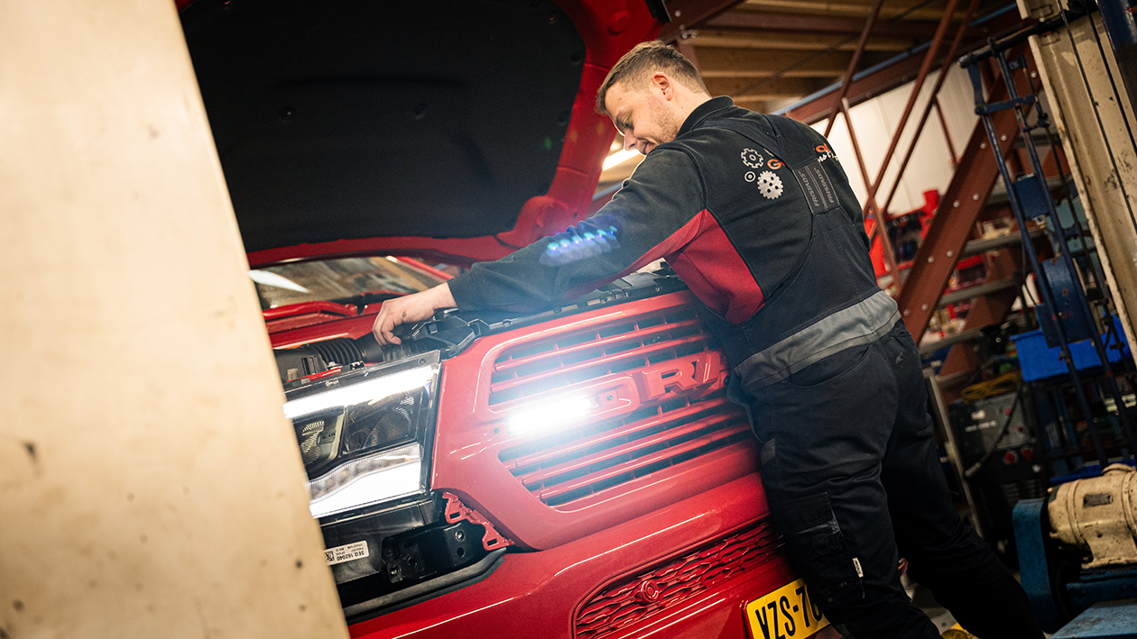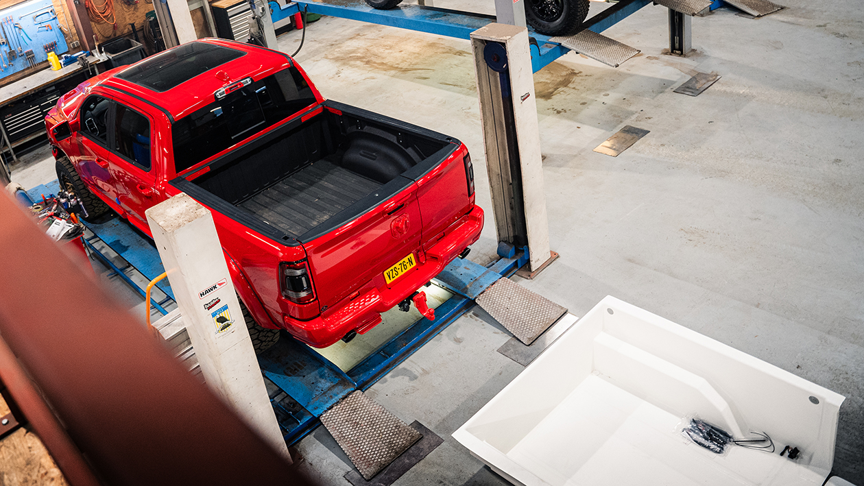 Van deze nieuwe auto hebben wij de accessoires gedemonteerd zodat deze in de juiste rode kleur gecoat konden worden. Vervolgens extra accessoires op de pick-up gemonteerd en zorgden we voor upgrades voor de truck.